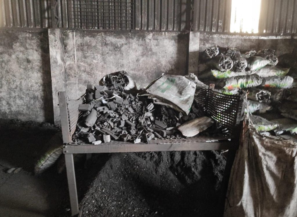 Durante a fiscalização, a equipe técnica verificou que os trabalhadores realizavam o manuseio e o empacotamento do carvão utilizando equipamentos de proteção inadequados, o que pode causar danos à saúde devido à inalação do pó do material.