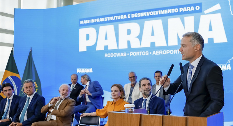 Dirigindo-se ao presidente Lula, completou: “No governo do senhor, nós vamos investir R$ 65 bilhões a R$ 70 bilhões [recursos públicos na área de transporte], nós mais do que dobramos o investimento no país. Só no Paraná, com o esforço, nessa parceria público-privada, nós vamos investir 100 bilhões de reais agora e vamos atrair 400 bilhões de reais ao longo desse ciclo, que é o maior ciclo de concessão rodoviária da história do país”, finalizou.