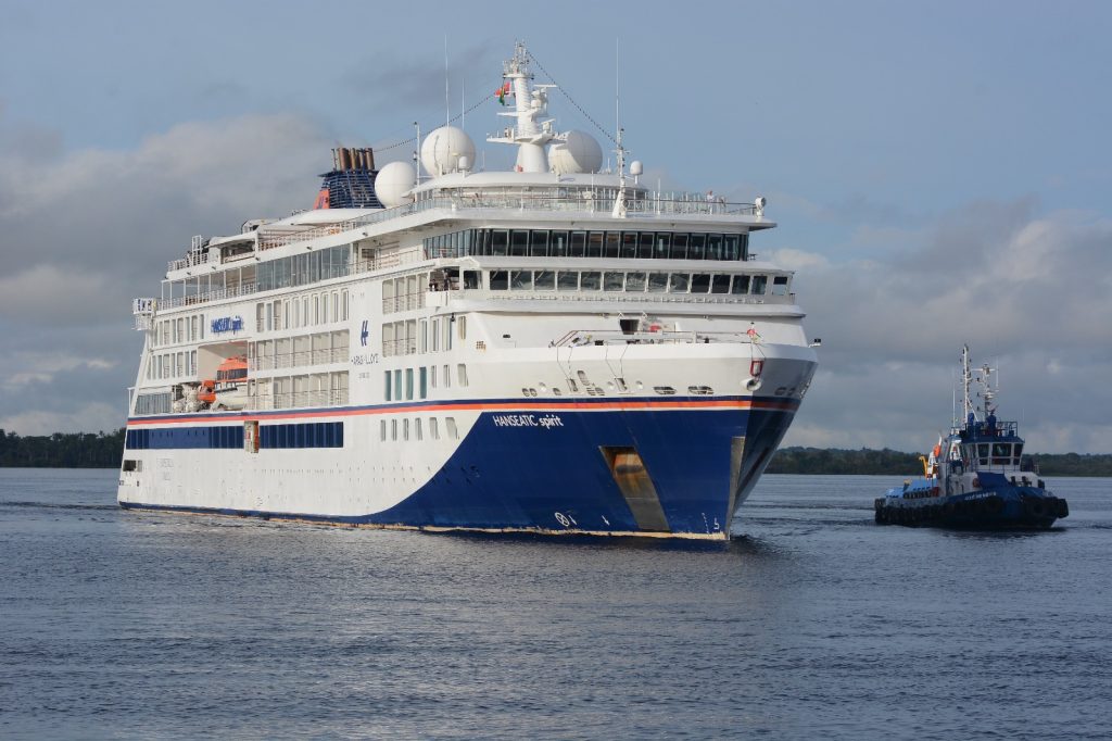 Fotos: Maiko Mendonça/ AmazonasturO Governo do Amazonas, por meio da Empresa Estadual de Turismo (Amazonastur), realizou, na manhã desta quarta-feira (08/04), o receptivo ao navio de luxo Hanseatic Spirit, no Porto de Manaus, Centro, zona sul de Manaus. A embarcação trouxe 200 passageiros e 175 tripulantes, totalizando 375 visitantes ao estado. O navio permanece ancorado até quinta-feira (09/04) e encerra a temporada de cruzeiros 2025/2026.